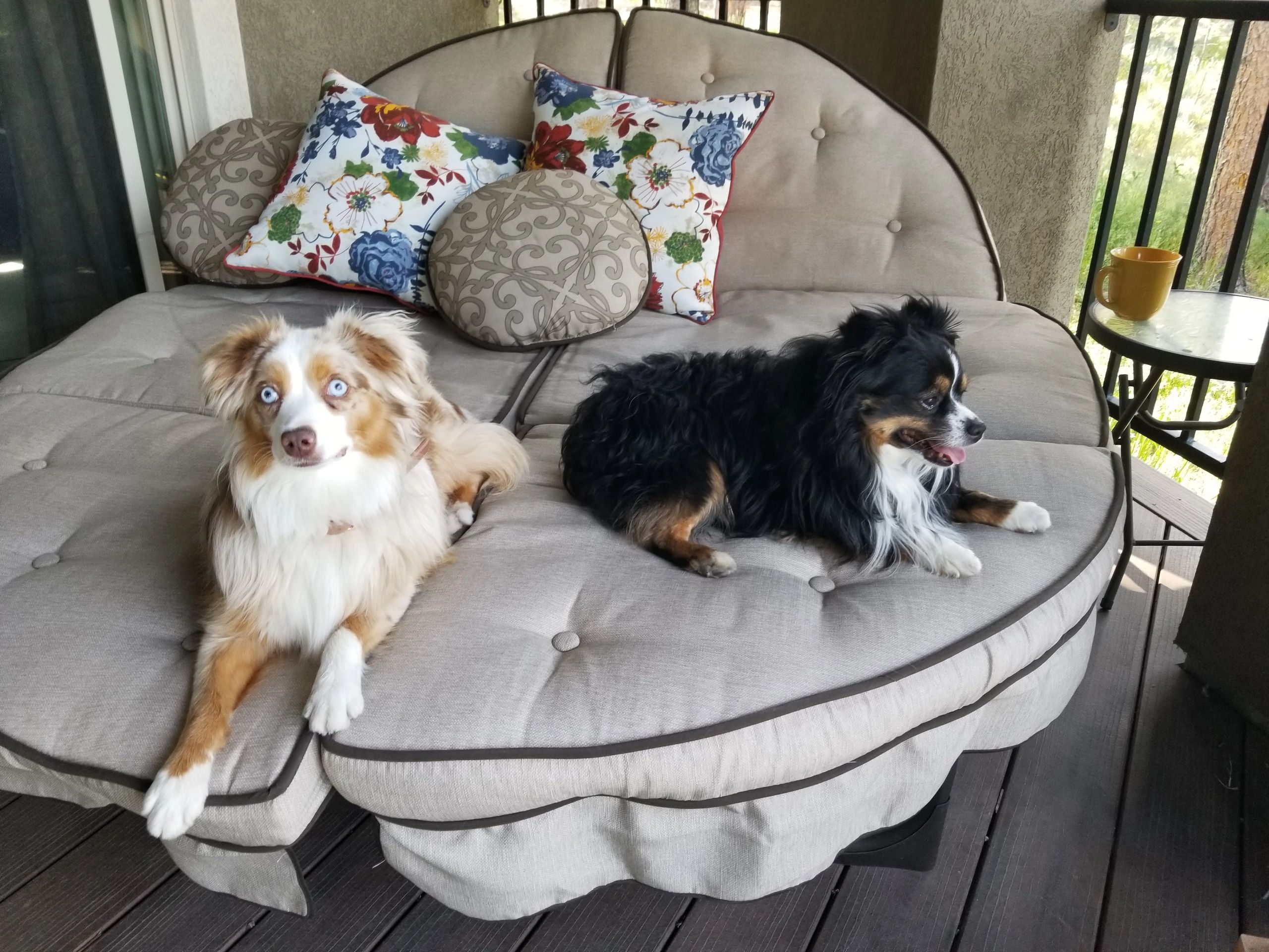 The red tri male figured it out pretty quickly. Tipsy (blue merle female) figured it out just a few minutes after I stopped filming. It will take several more days of training before they will come running down. This video also gives a good look at coloration and size. Puppies are raised with our family of 3 cats and 3 dogs.